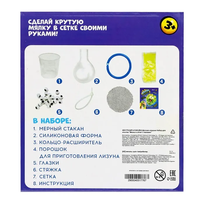Набор для опытов «Мялка в сетке» позволит ребёнку провести увлекательный эксперимент по химии и создать необычную игрушку-антистресс своими руками.