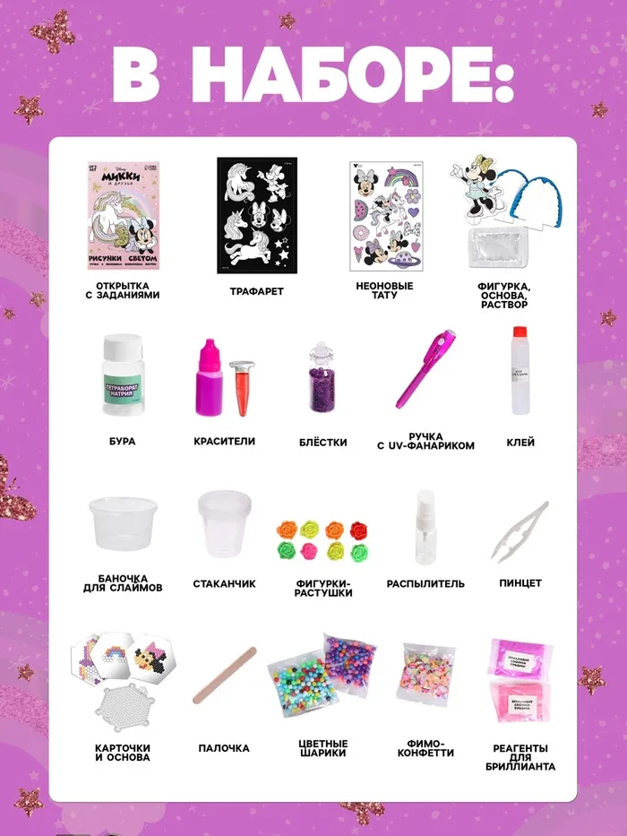 Набор для опытов «Минни Маус. Единорог», 7 опытов — Характеристики