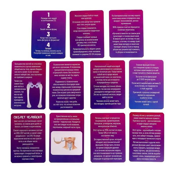 - Карточки для изучения костей и внутренних органов.