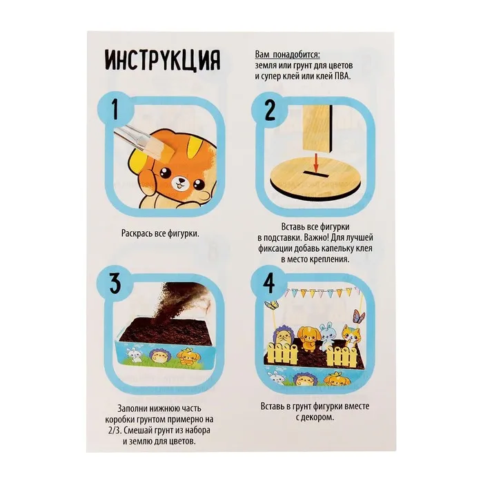 Набор для опытов «Мой мини-сад: Зверята», вырасти травку — Характеристики