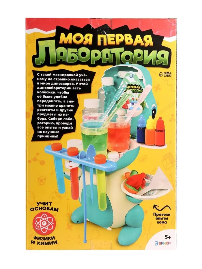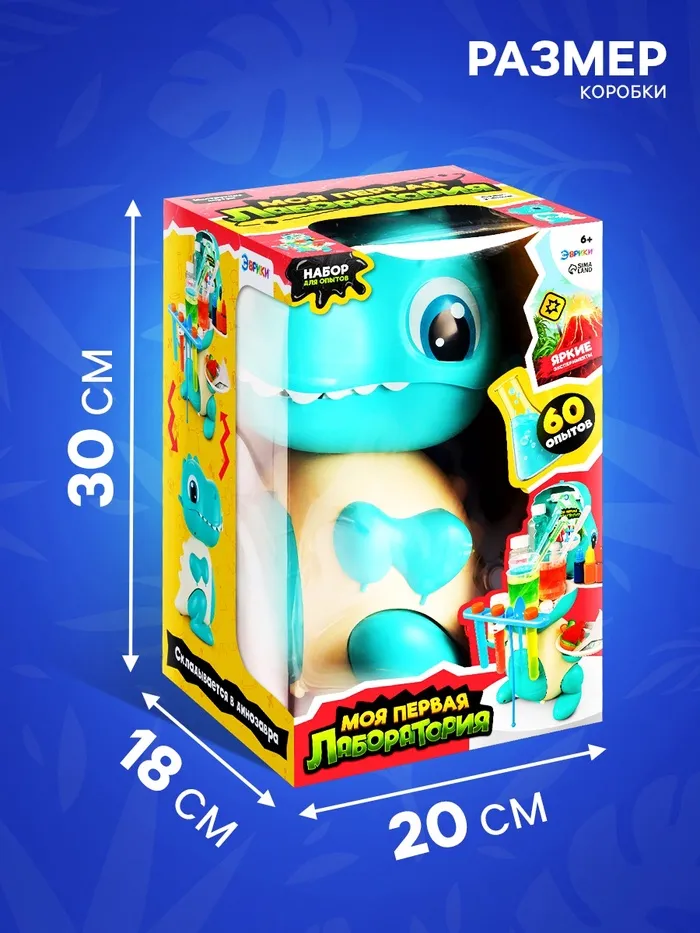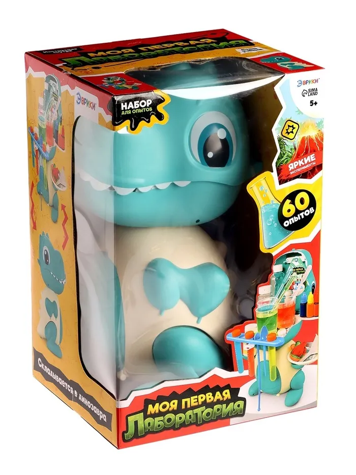 Набор для экспериментов «Моя первая лаборатория» в виде динозавра станет отличным подарком для юных исследователей от 5 лет. Этот набор открывает дверь в увлекательный мир химии, где ребёнок сможет провести 60 захватывающих опытов с реагентами. Играя, дети познакомятся с основами науки, разовьют любознательность и интерес к изучению окружающего мира.