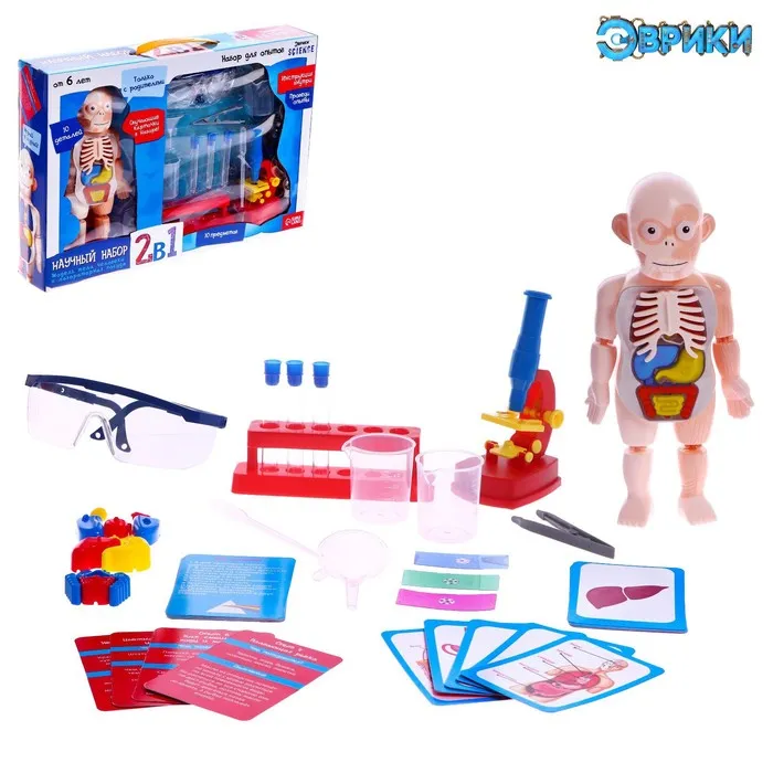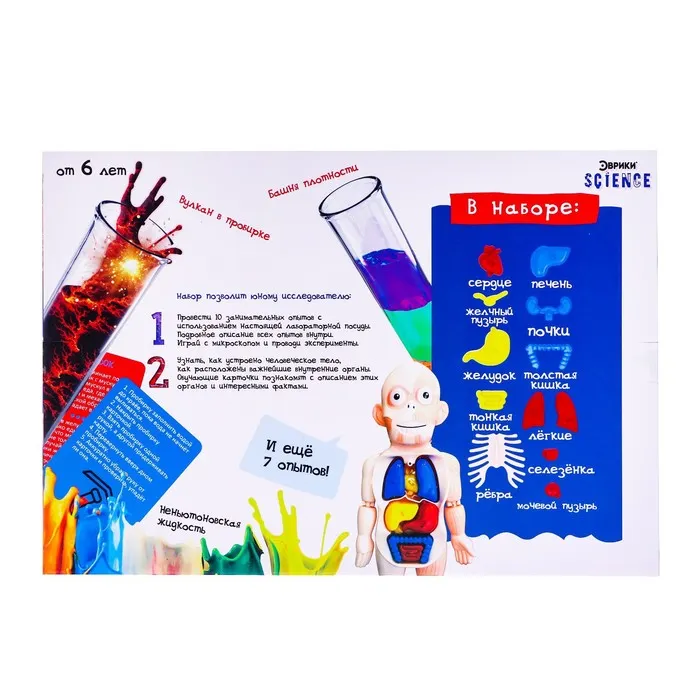 Набор для опытов «Научный набор 2В1», модель тела человека и лабораторная посуда — Характеристики