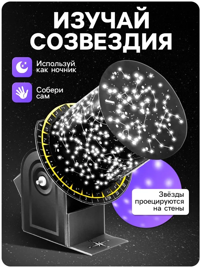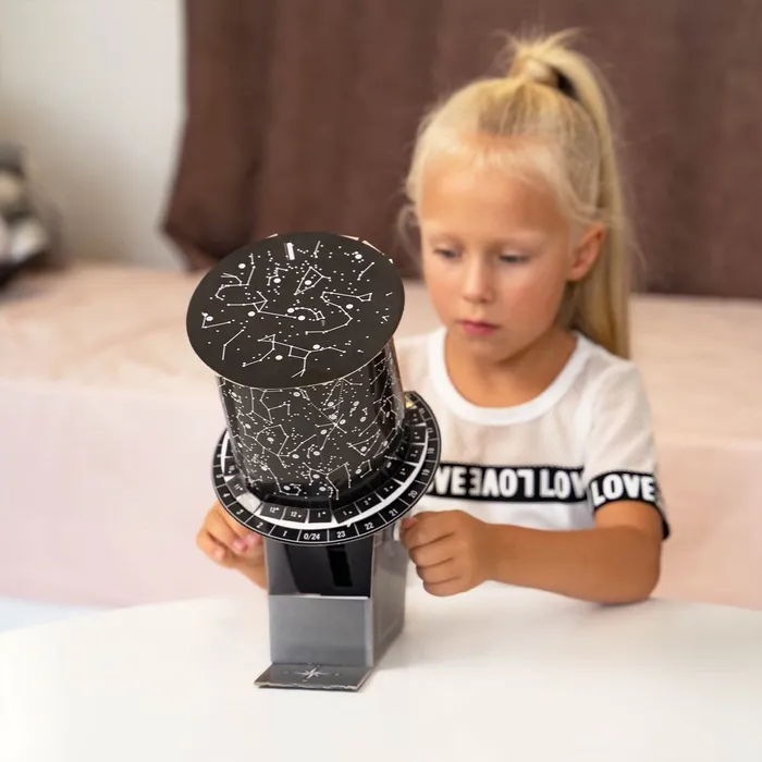 Соберите проектор звёздного неба и устройте в комнате настоящий планетарий. Устройство можно настраивать на разную широту и видеть различные созвездия.