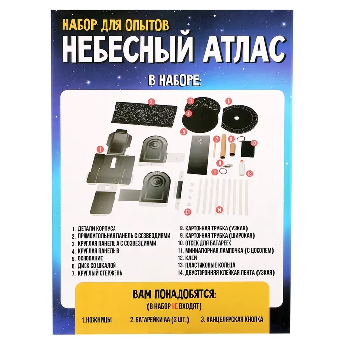 Набор для опытов «Небесный атлас», работает от батареек — Характеристики
