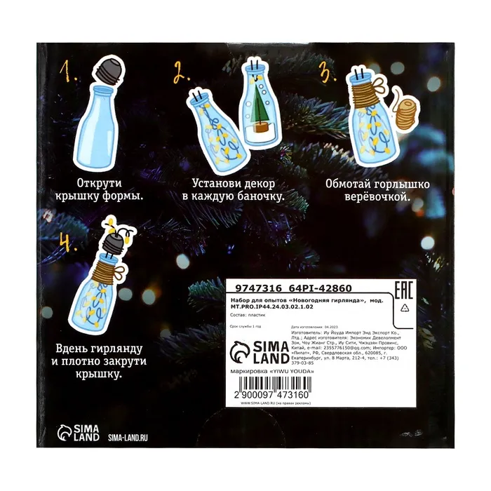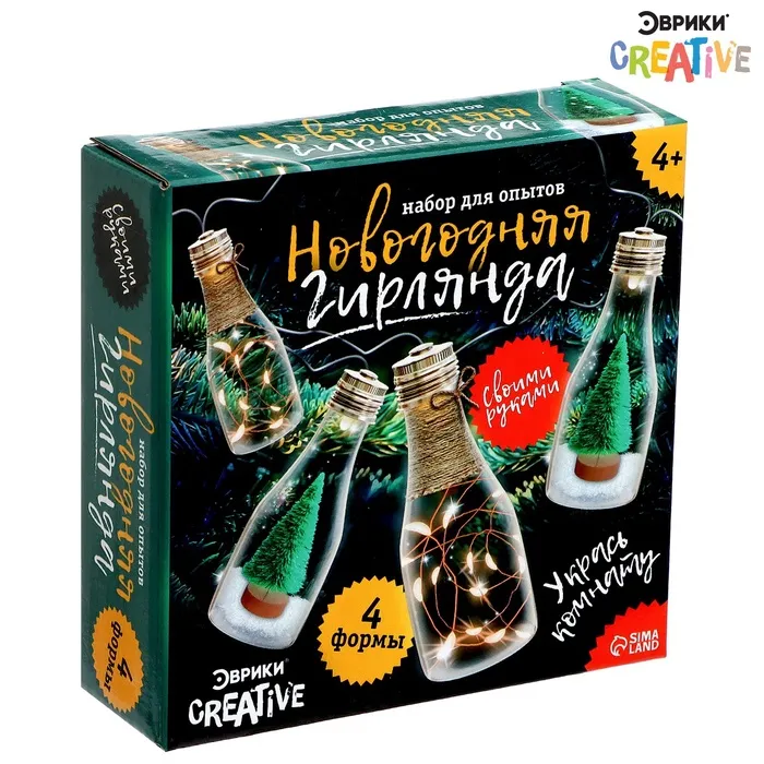 Набор для опытов «Новогодняя гирлянда», бутылочки, декор на новый год своими руками — Характеристики