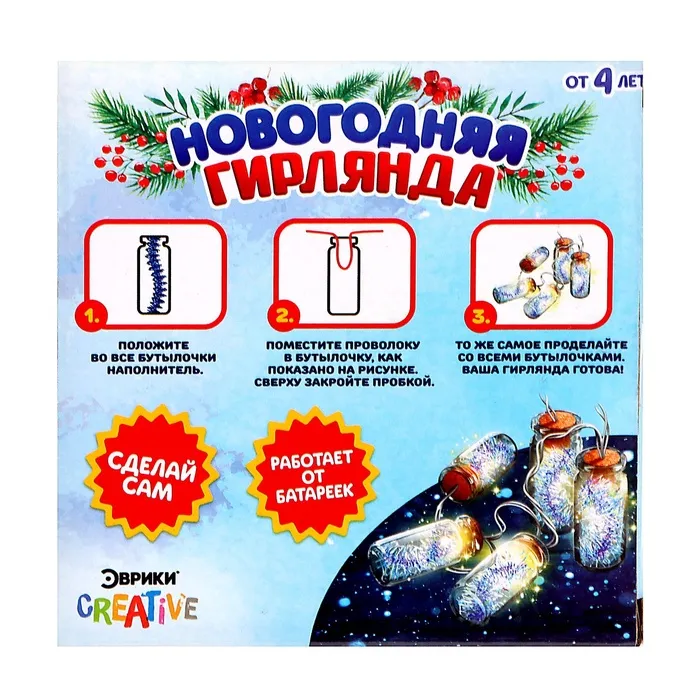 Создайте волшебную атмосферу праздника с набором для создания светящейся новогодней гирлянды! Это не просто украшение, а увлекательный эксперимент, который порадует детей и взрослых. Соберите гирлянду, украсьте её мишурой и наблюдайте, как она загорается волшебным светом.