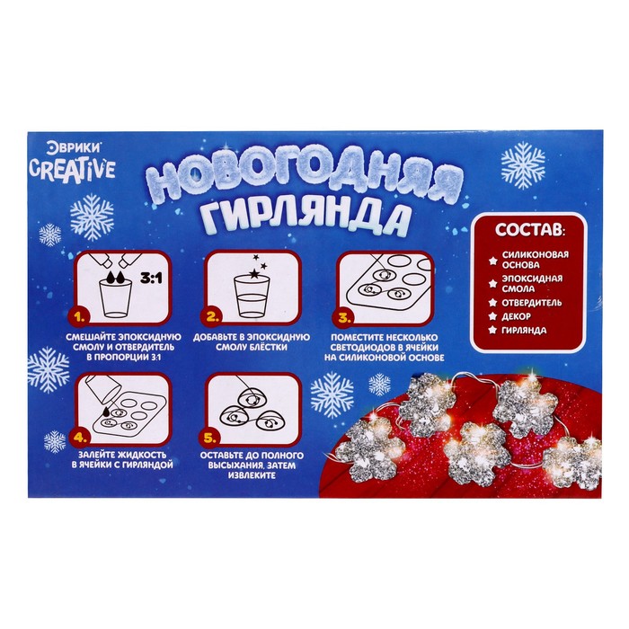 Набор для опытов «Новогодняя гирлянда: Снежинки», из эпоксидной смолы, 7 ламп, 1 режим — Характеристики