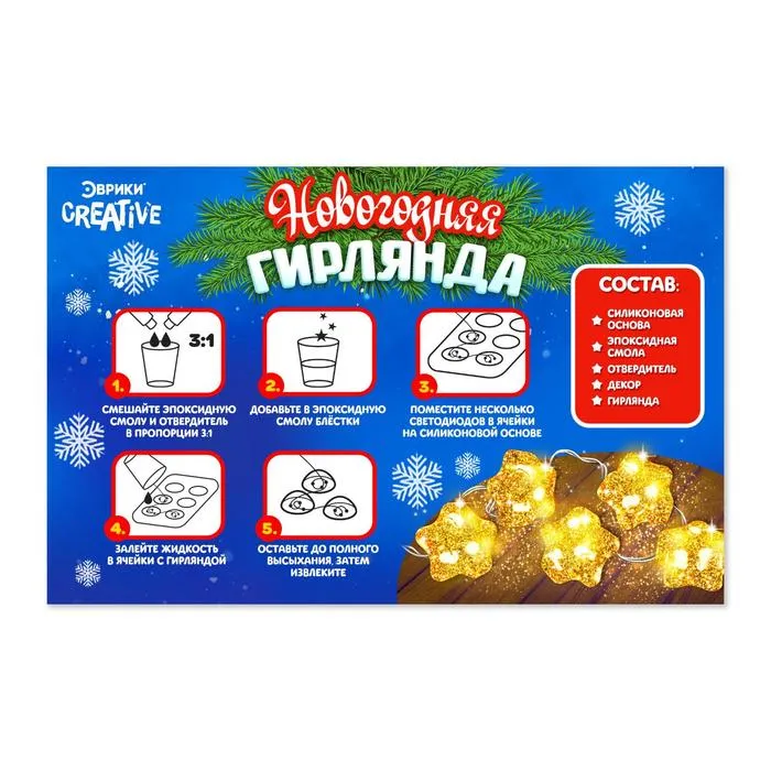 Набор для опытов «Новогодняя гирлянда: Звёздочки», из эпоксидной смолы — Характеристики