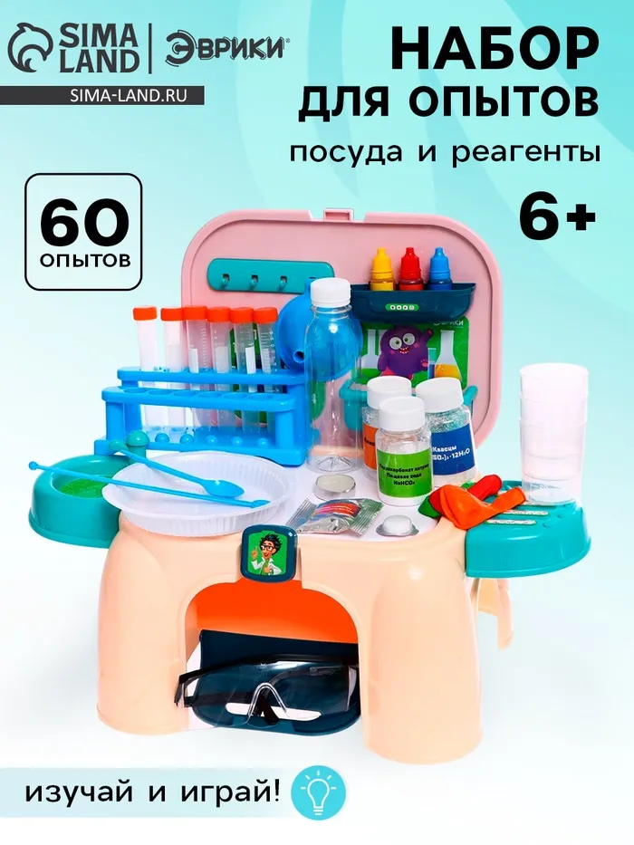 Набор для опытов «Эврики» поможет провести простые эксперименты и познакомиться со свойствами различных химических элементов. Ребёнок сам проведёт 20 опытов и удивит друзей!