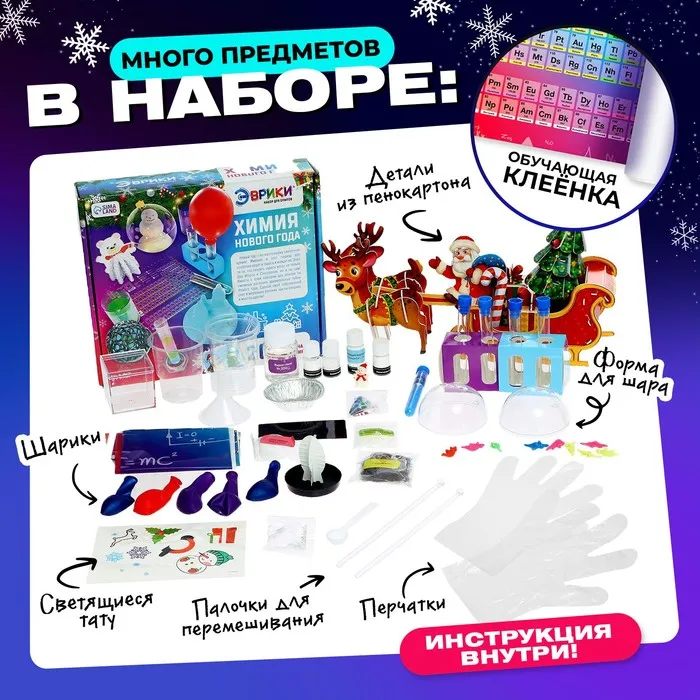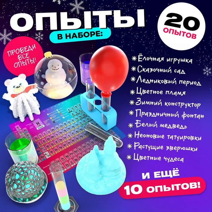 Набор для опытов «Новогодняя химия», 20 опытов — Характеристики