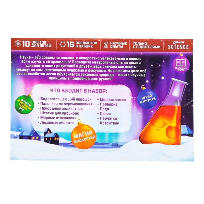 Набор для опытов «Новогодние истории», 10 опытов — Характеристики
