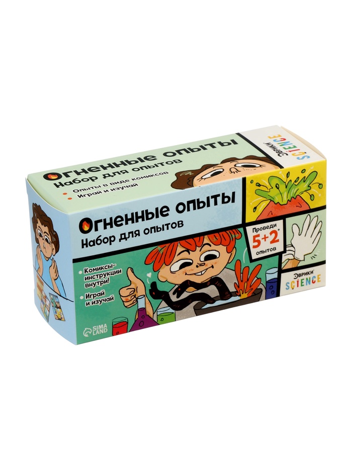 - 15 эффектных опытов: ребёнок сможет попробовать себя в разных направлениях — мыльные, огненные, цветовые и тактильные эксперименты.