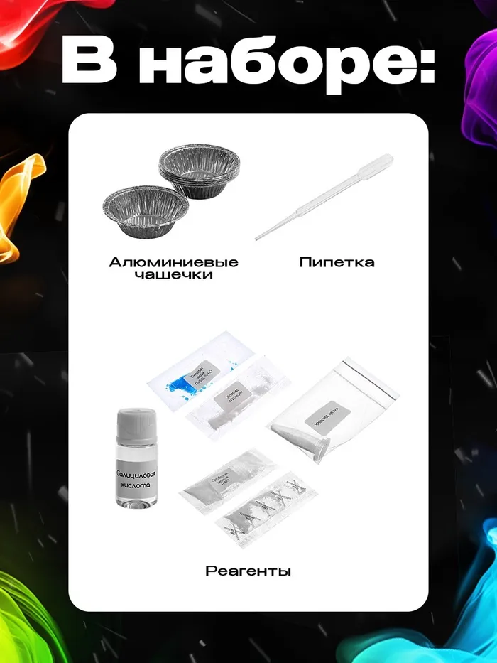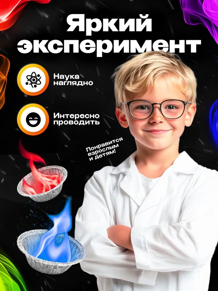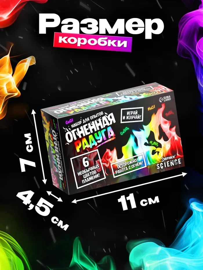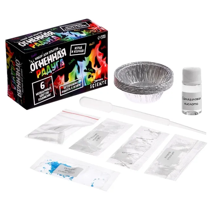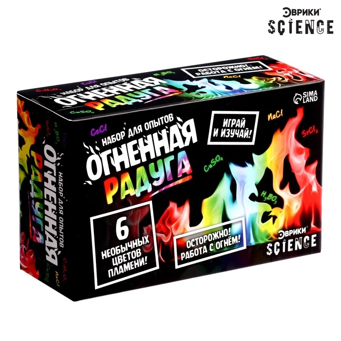 С набором для опытов «Огненная радуга» ребёнок узнает об удивительных свойствах веществ и создаст огненную радугу прямо у себя дома!