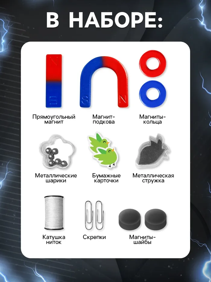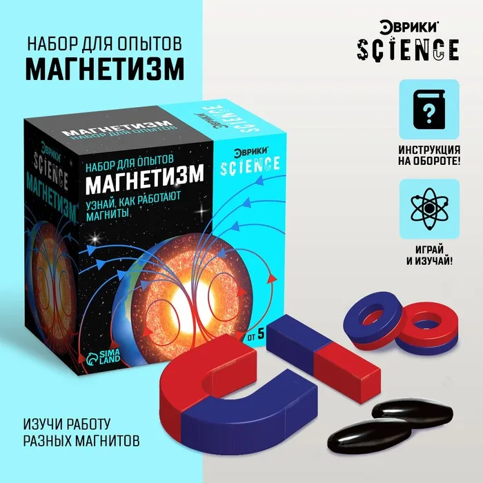 Набор «Опыты с магнитами» знакомит с основными законами физики. Набор помогает отвлечься от гаджетов и провести время с пользой и удовольствием. Ребёнок проведёт 6 увлекательных опытов, узнает принцип работы магнита, научится работать с материалами, следовать инструкциям и проводить самостоятельные исследования.