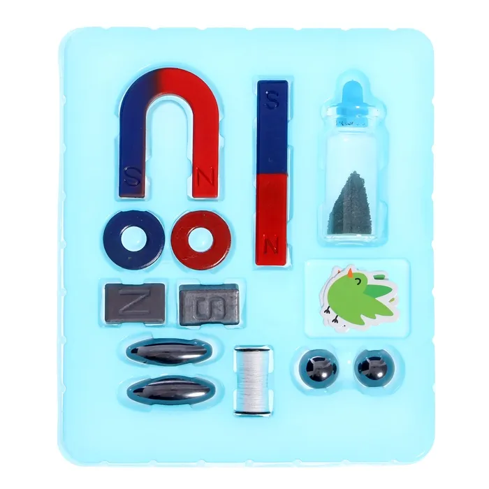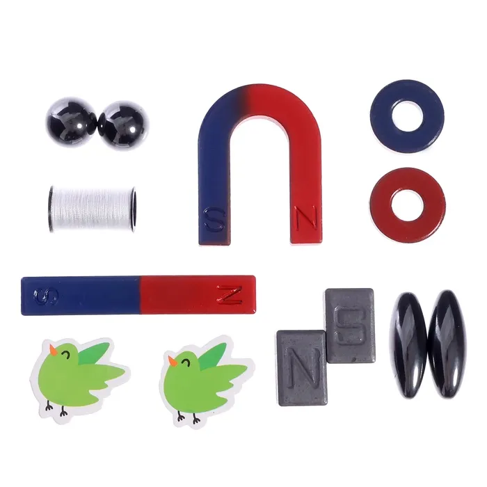 - Безопасные материалы: магнит и металл, подходящие для использования детьми.
