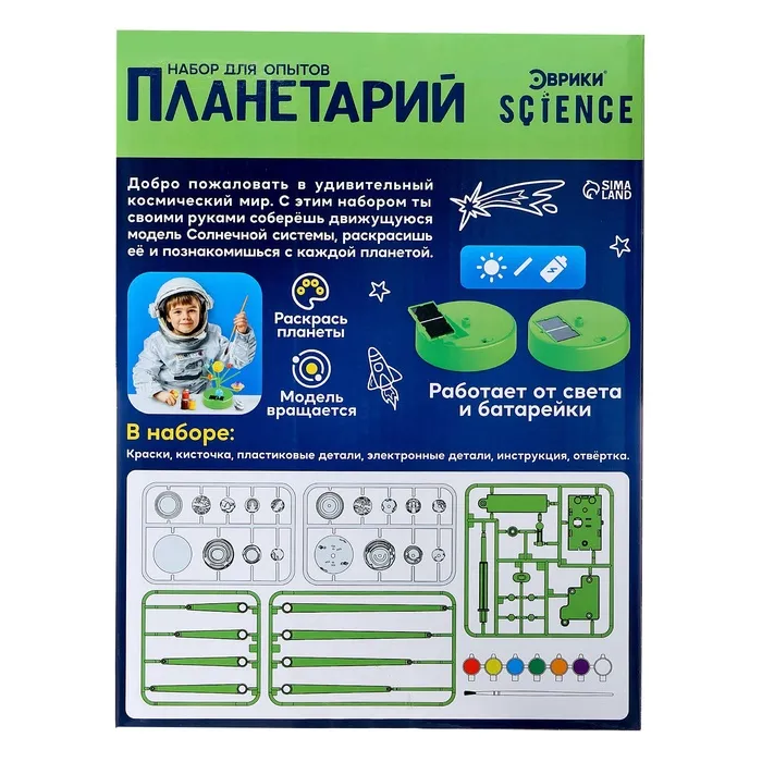 Набор для опытов «Планетарий», 2 источника энергии — Характеристики