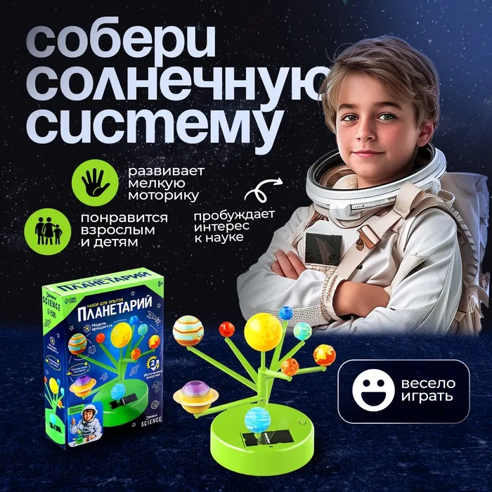 Набор для опытов «Планетарий» отправит юного исследователя в далёкое космическое путешествие! Ребёнок сам соберёт модель Солнечной системы, запомнит расположение планет и раскрасит каждое небесное тело.