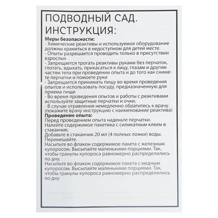 Набор для опытов «Подводный сад» — Характеристики