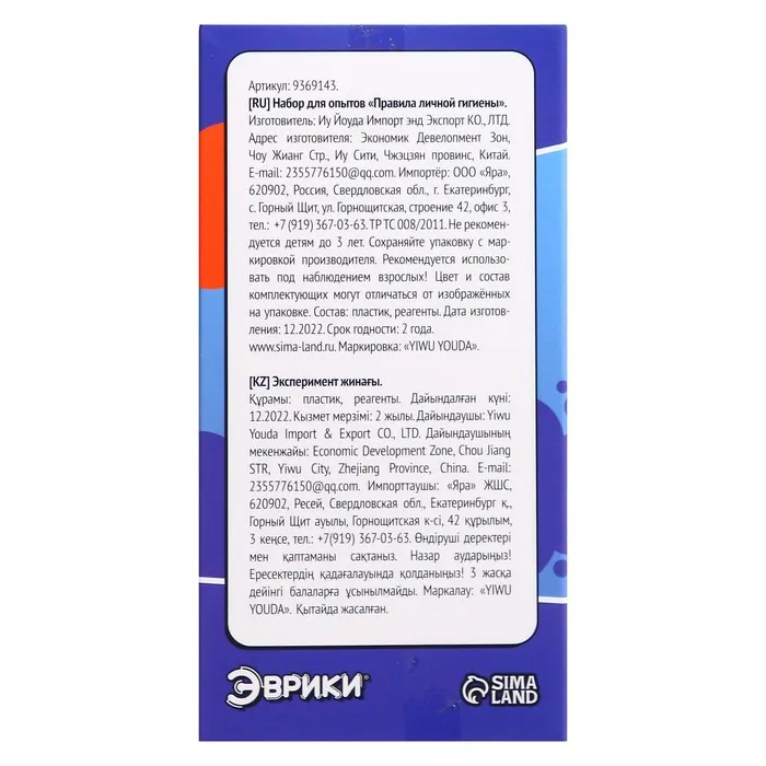 Набор для опытов предназначен для детей старше 5 лет. Дети должны проводить опыты только под присмотром взрослых.
