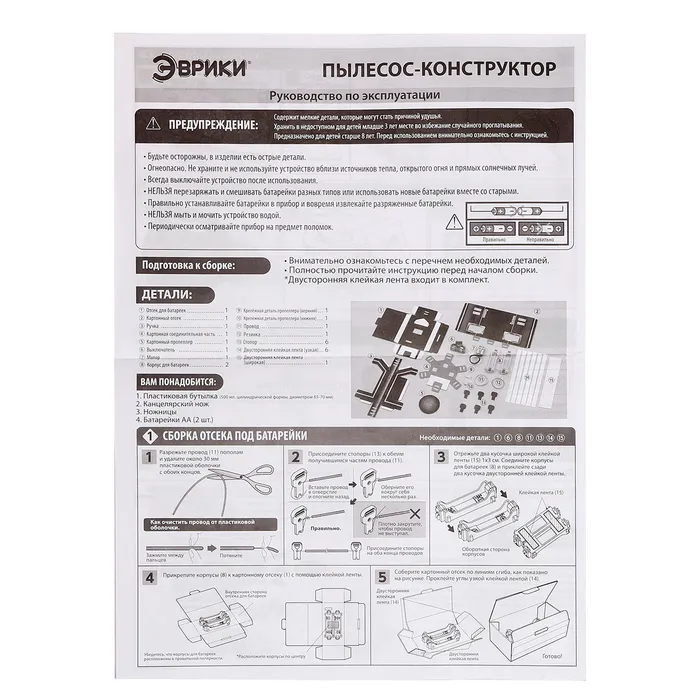 Набор для опытов «Пылесос-конструктор», работает от батареек — Характеристики