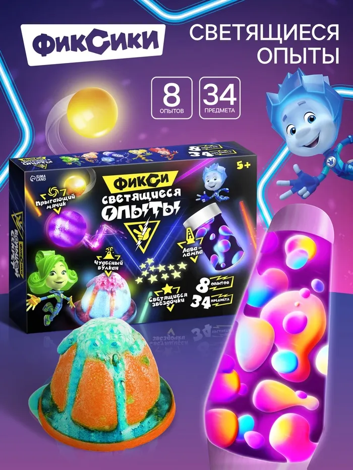 Набор для опытов «Фиксики: Светящиеся опыты», 8 опытов