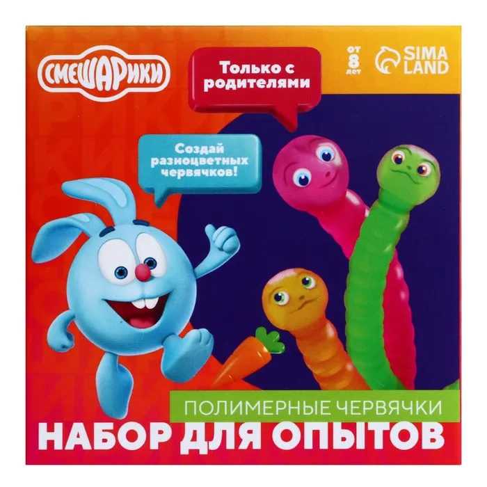 Создай волшебных червячков вместе со Смешариками! Набор «Полимерные червячки» — это увлекательное знакомство с химией для детей от 8 лет. Любимые персонажи делают первый научный опыт по-настоящему захватывающим.
