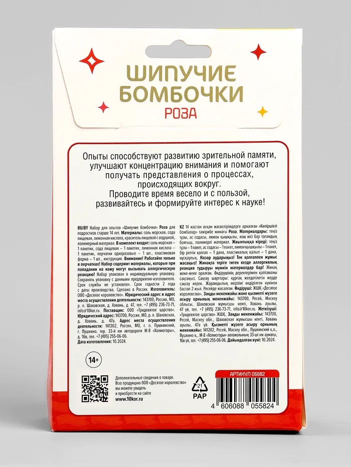 Набор для опытов «Шипучие бомбочки. Роза», бомбочка для ванны с ароматом клубники — Характеристики