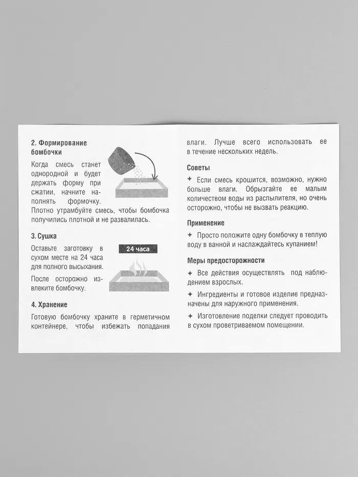 Изготовление бомбочки рекомендуется проводить под наблюдением взрослых в сухом проветриваемом помещении.