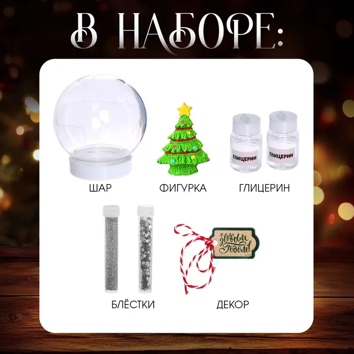 Подарите своему ребёнку возможность создать собственный новогодний сувенир — снежный шар с ёлочкой внутри. Этот набор для творчества не только украсит дом к празднику, но и поможет развить навыки рукоделия и воображение.