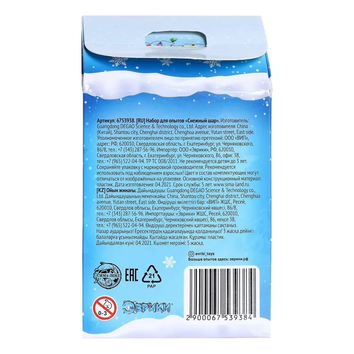 Набор для опытов «Снежный Шар», ёлочка, диаметр 8 см — Характеристики