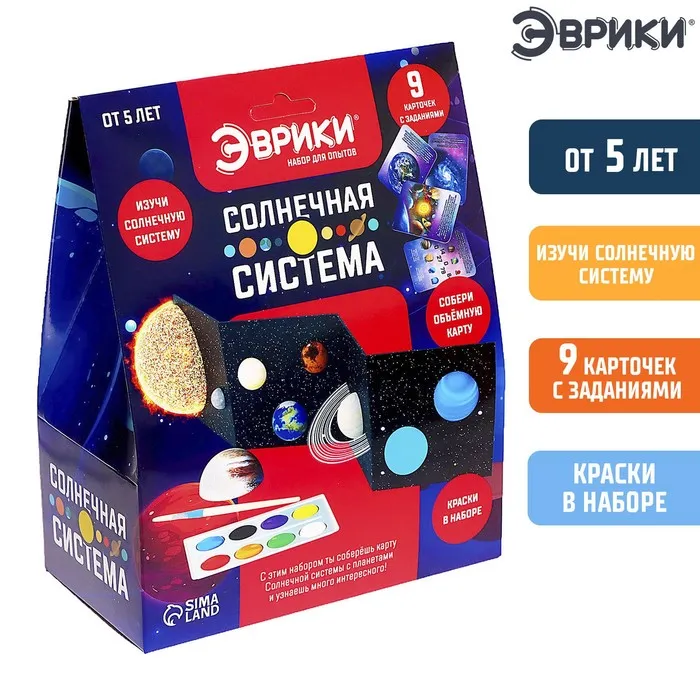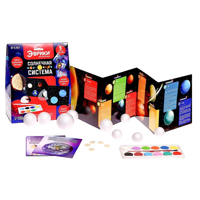 С набором для опытов «Солнечная система» ребёнок соберёт карту Солнечной системы с планетами и узнает новое о каждом небесном теле.
