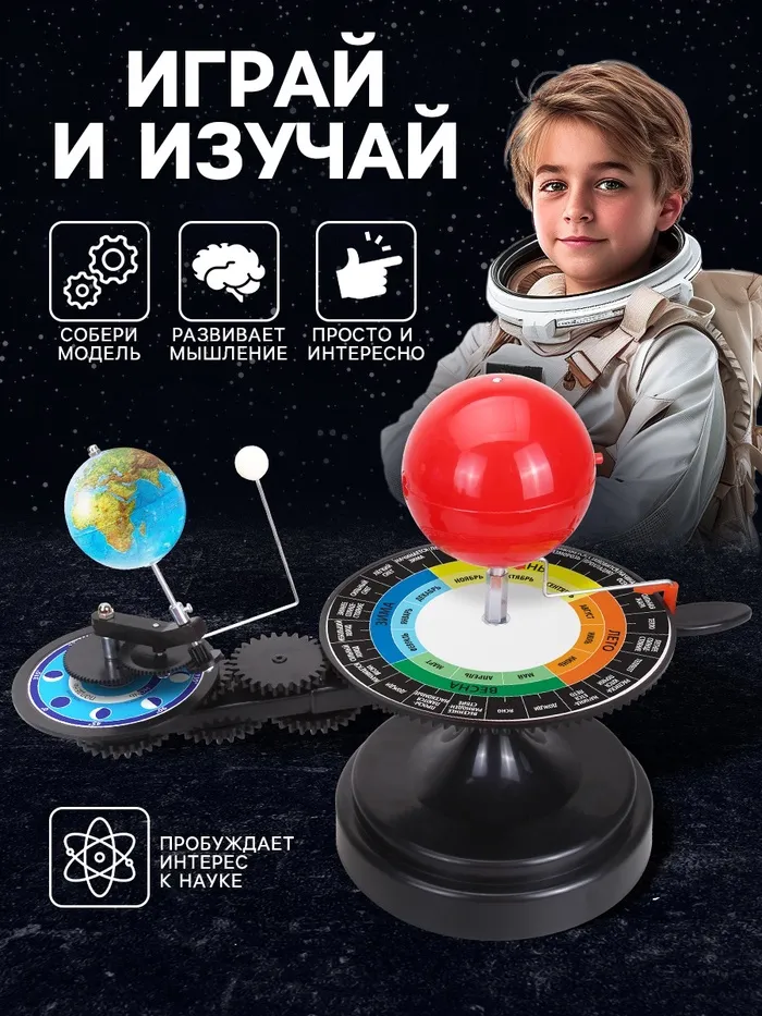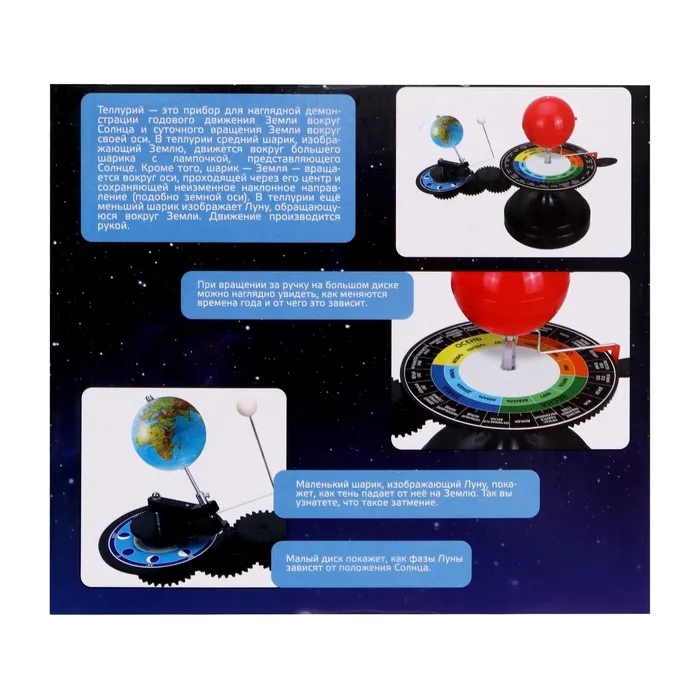 Кроме того, ребёнок сможет собрать теллурий — прибор, демонстрирующий движение Земли вокруг Солнца и её суточное вращение. Это поможет лучше понять смену времён года и другие астрономические явления.