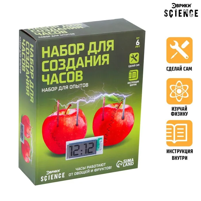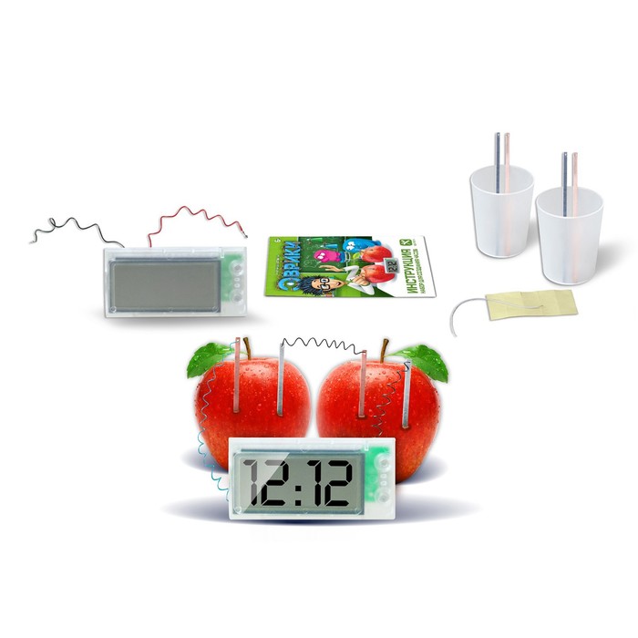 «Создай свои часы» поведает малышу, что такое электрический ток, ребёнок научится получать его из картошки, лимона и даже апельсинового сока и сможет самостоятельно изготовить электронные часы.