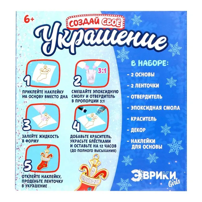 Набор для опытов «Создай своё украшение: Снеговик и носок», из эпоксидной смолы — Характеристики