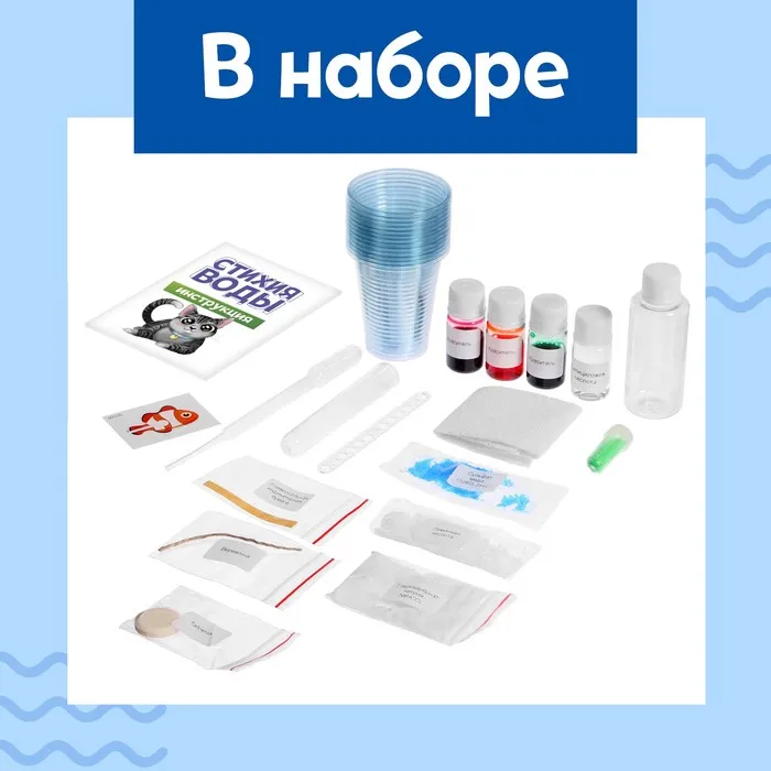 Набор для опытов «Стихия воды» — увлекательный способ познакомить ребёнка с миром водной стихии и научить его проводить собственные эксперименты. Каждый опыт представлен в интересной и доступной форме, что позволяет юному учёному легко воспринимать информацию и учиться новому. С помощью этого набора ребёнок разовьёт навыки наблюдения, логического мышления и творческого подхода к решению задач.