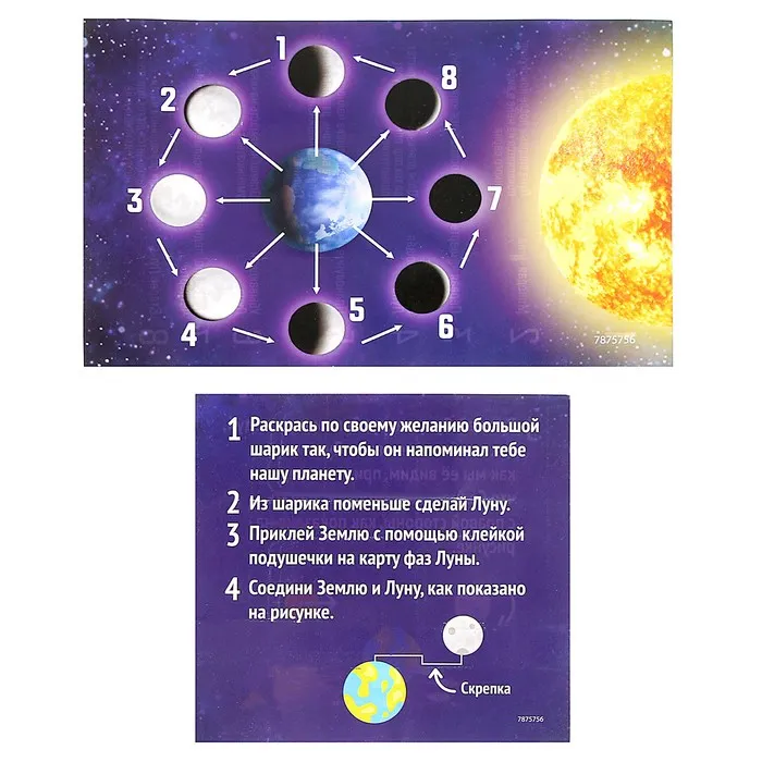 С набором для опытов «Тайны космоса» ребёнок изучит фазы Луны и создаст небольшую модель, которая покажет, как влияет положение Луны на то, как мы её видим.