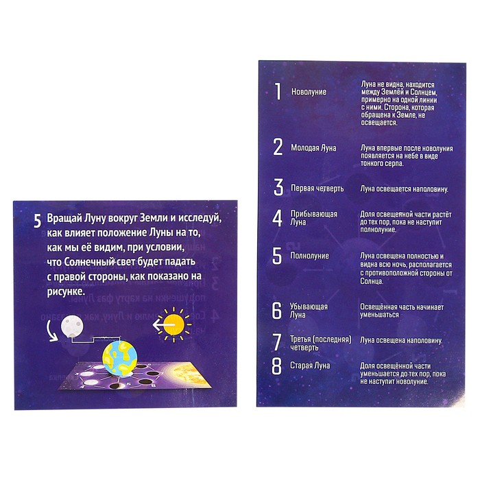 Набор поможет подробно изучить все фазы Луны от новолуния до старой Луны.