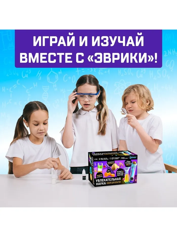 С набором для опытов «Эврики» ребёнок узнает об удивительных свойствах химии, проведёт 15 увлекательных экспериментов дома и удивит своих друзей.