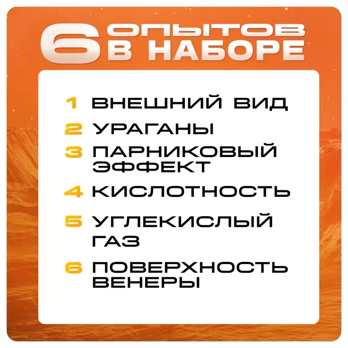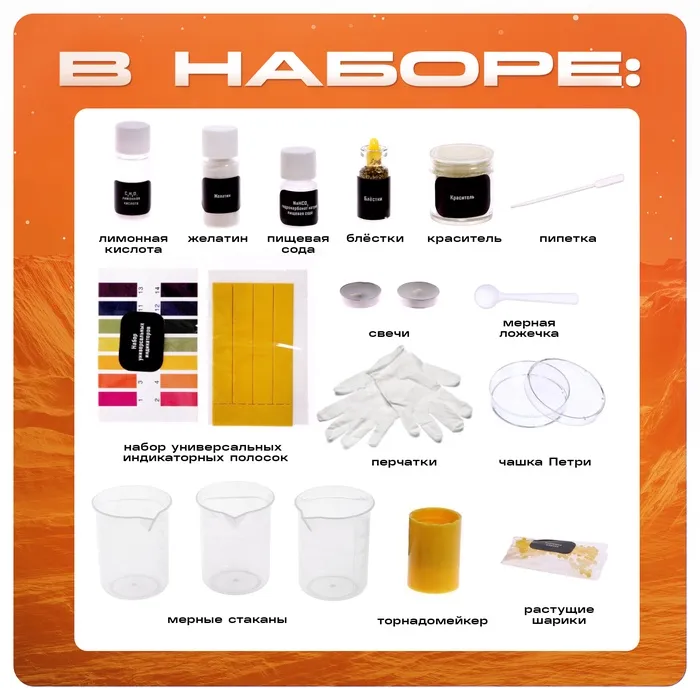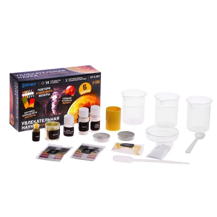 С набором для опытов «Эврики» ребёнок узнает об удивительных свойствах веществ, проведёт несколько интересных экспериментов, связанных с особенностями одной из планет Солнечной системы.