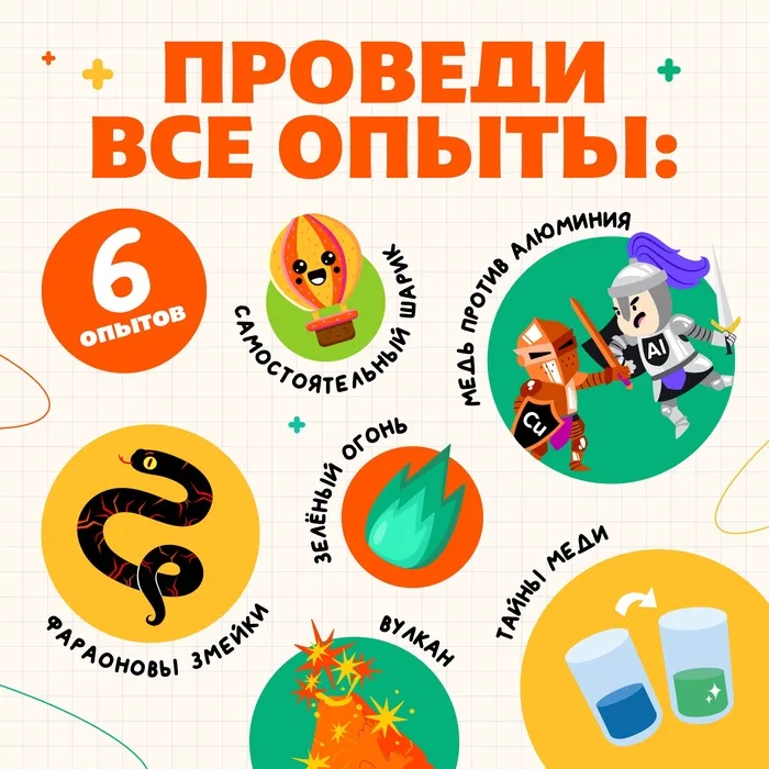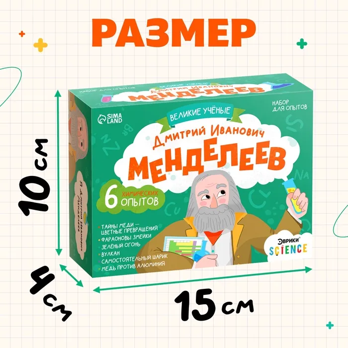 Набор для опытов «Великие учёные: Дмитрий Менделеев», 6 опытов — Характеристики