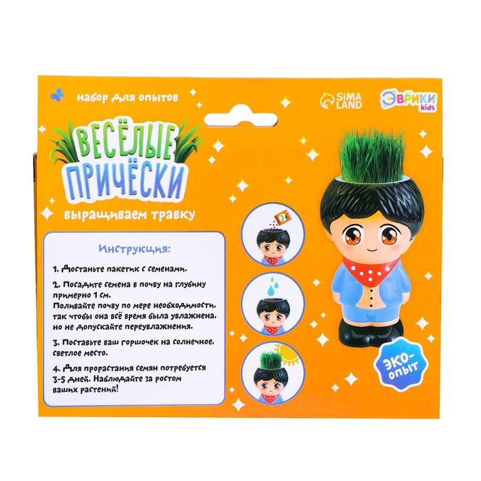 Набор для опытов «Весёлые прически: Мальчик», выращиваем травку — Характеристики