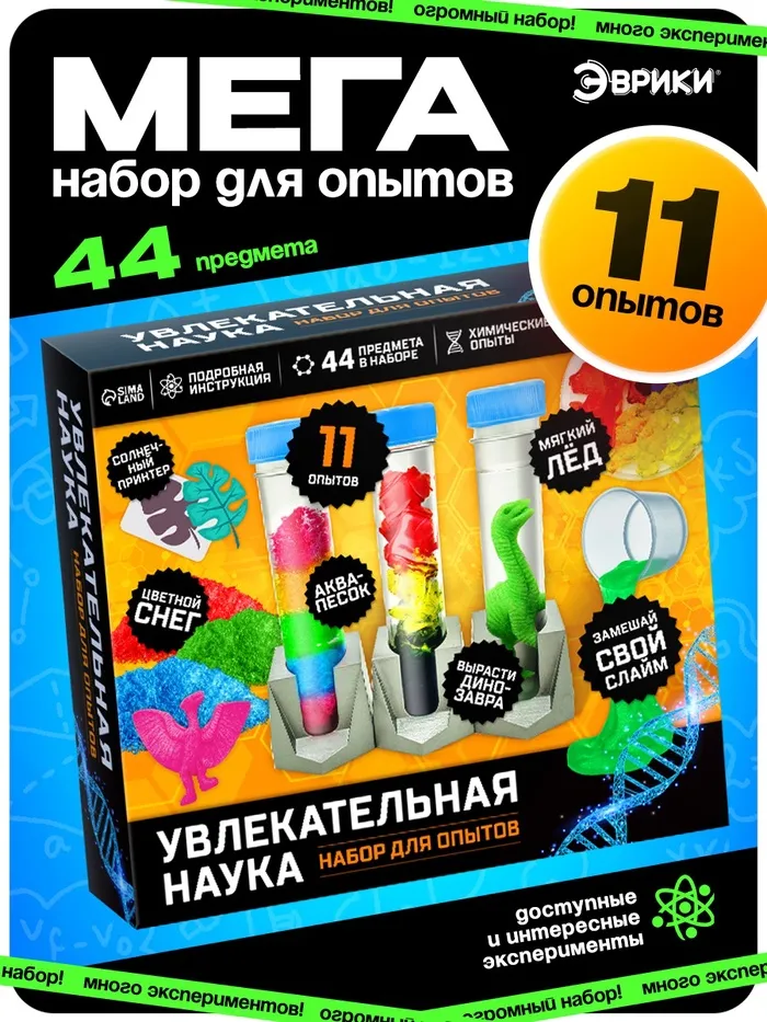 С набором для опытов ребёнок почувствует себя настоящим учёным. Изготовление искусственного снега и игра с ним развивает мелкую моторику, усидчивость и фантазию ребёнка.