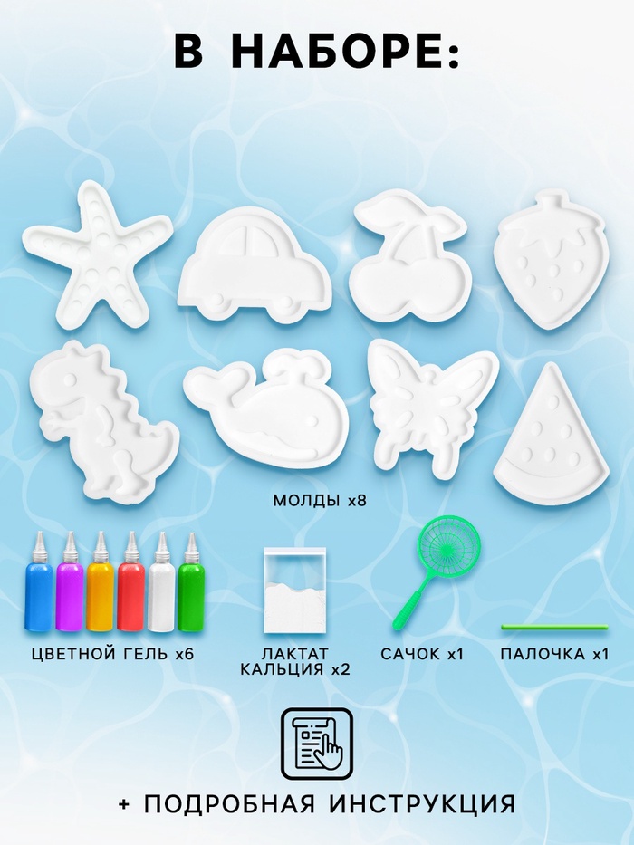Набор «Водные фигурки» — это веселое и безопасное развлечение для детей от 4 лет. С его помощью малыши смогут создавать красочные фигурки из геля, развивая воображение и мелкую моторику.