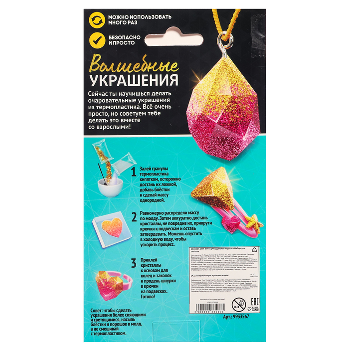 Набор для опытов «Волшебные украшения», термопластик, светится в темноте — Характеристики