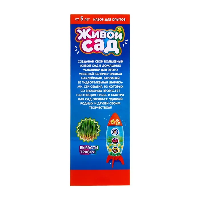 Набор для опытов «Живой сад: Ракета» станет прекрасным способом занять детей и показать им процесс прорастания семян. Ребёнок самостоятельно проведёт эксперимент с растущими гидрогелевыми шариками, вырастит декоративную травку в домашних условиях, научится ухаживать за растениями.
