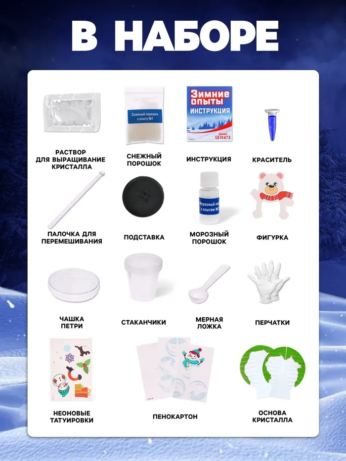 Погрузитесь в мир зимних чудес вместе с этим набором и подарите своему ребёнку незабываемые впечатления от научных открытий!