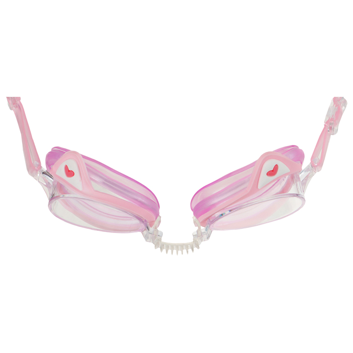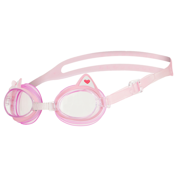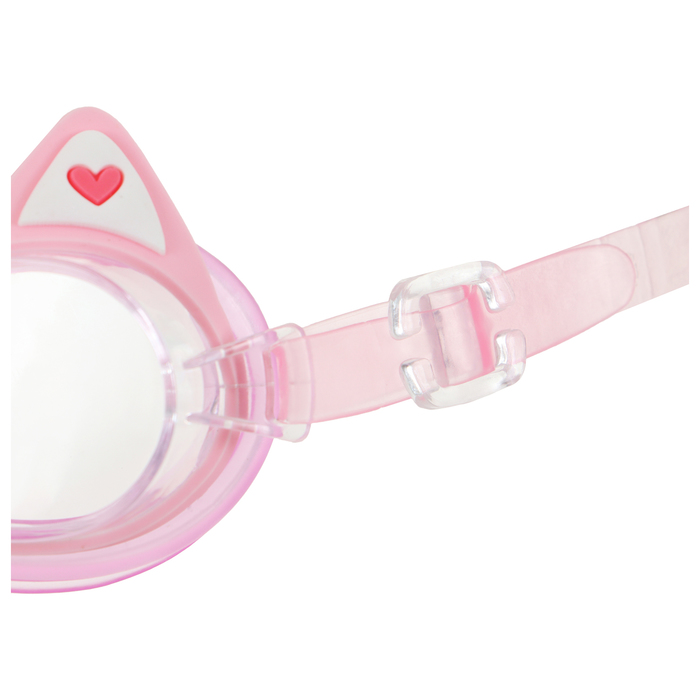 Линзы очков изготовлены из поликарбоната, имеют покрытие от УФ-излучения для защиты глаз ребёнка. Покрытие антифог защищает от запотевания очков. Мягкий и комфортный уплотнитель обеспечивает герметичность во время плавания. Ремешок регулируется под нужный обхват головы.