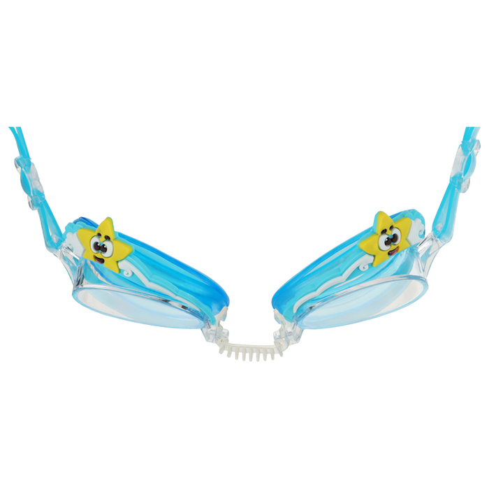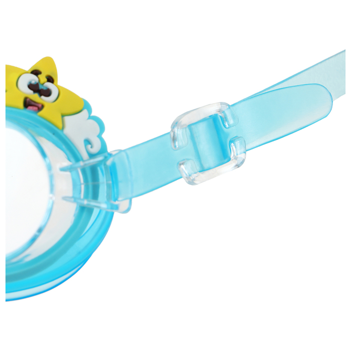 Линзы очков изготовлены из поликарбоната, имеют покрытие от УФ-излучения для защиты глаз ребёнка. Покрытие антифог защищает от запотевания очков. Мягкий и комфортный уплотнитель обеспечивает герметичность во время плавания. Ремешок регулируется под нужный обхват головы.