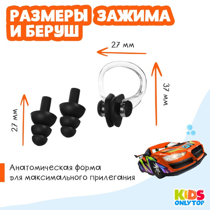 Набор для плавания ONLYTOP «Машина»: зажим для носа, беруши, цвет чёрный — Характеристики