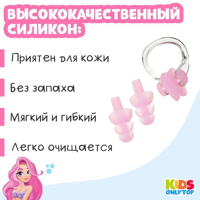 Набор для плавания ONLYTOP «Русалка»: зажим для носа, беруши, цвет розовый — Характеристики